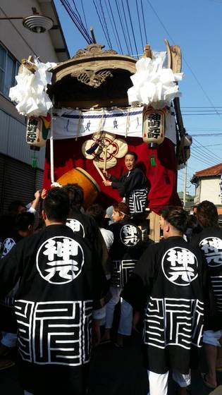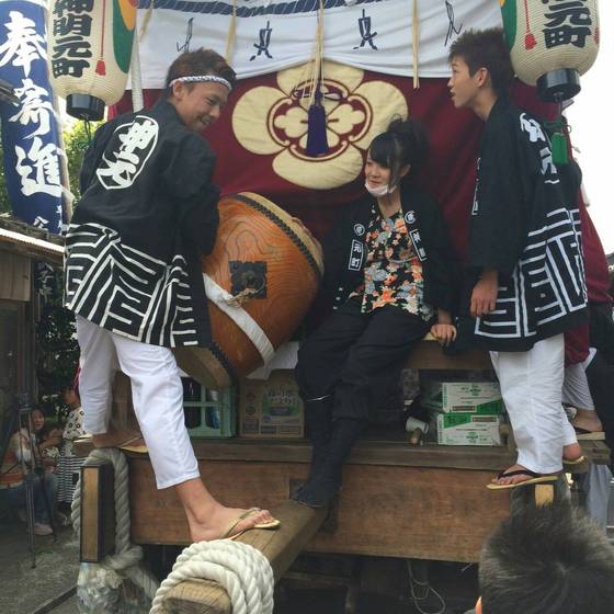 山車の巡行には太鼓や笛などのお囃子とイナセな法被衣装ですよね~
