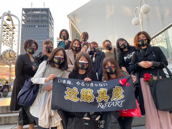 「いま俺、やるっきゃない」 横断幕とお揃いのオリジナルマスクも作成させていただきました! 近藤真彦さん、現役でまだまだご活躍なのです。 コロナ感染対策も万全ですが、マスク越しでも伝わってくる皆様の笑顔が何といっても最高、素敵ですね。