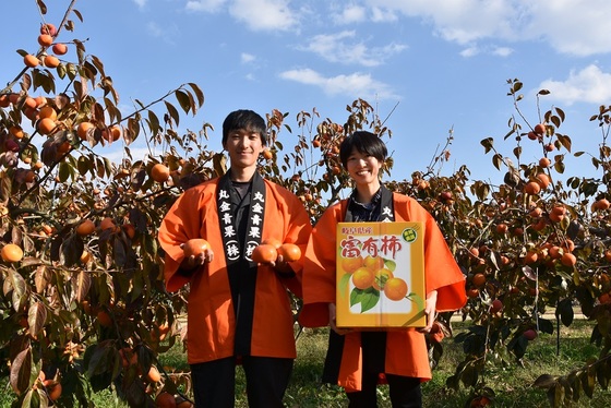 丸金青果様 「先日のイベントは作成いただいた法被を着て大盛況でした!」良かったですね。こちらこそありがとうございました。 お客様よりパッケージPR用として撮影されたお写真を頂戴いたしました。 秋色の法被とおいしそうな「富有柿」!お二人の笑顔が最高です。
