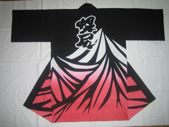 北の大地にそびえる「幌尻山」をバックに勇壮な文字、極めつけは一枚一枚職人の手によるグラデーション染め!お客様の熱い想いを我々スタッフも共有出来た証しとも言えるオリジナル法被の完成です。