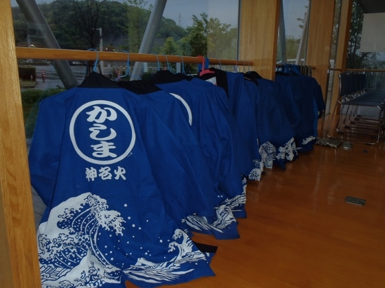新しい法被が並べられた風景は出番を待つ一瞬の緊張感を切り取ったような素敵なショットですね。