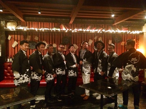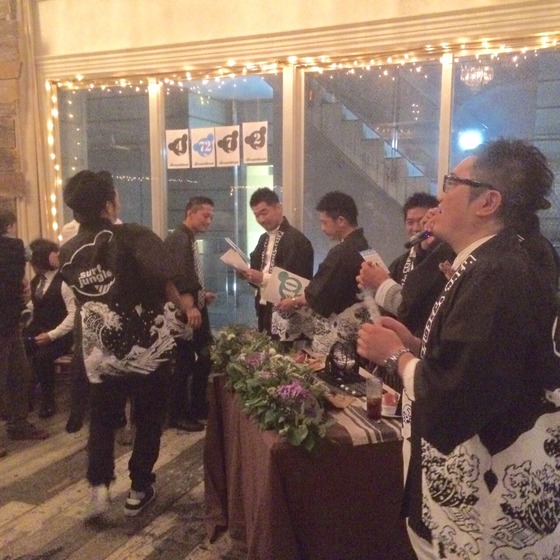 ご友人の結婚式パーティーの余興にと、オリジナルオーダー法被姿で登場です。