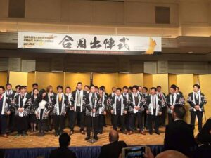 こちらは合同出陣式の一幕!日本青年会議所の大阪ブロック協議会様です。金屏風の前で黒地に白と赤をあしらった法被姿が皆様とってもお似合いです♪大阪ブロック協議会様...
