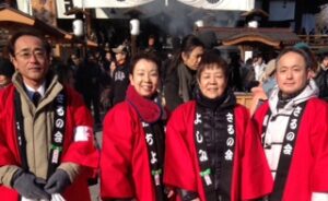 お仲間同士のお揃い法被でございます。「4人は善光寺の門前のこの町に生まれ育って60年。声高らかに福を呼ぶ豆まきを行い良い記念になりました。今日は清々しい立春です...