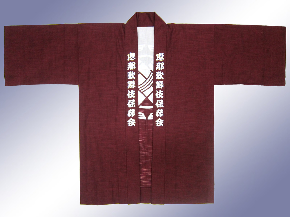 日本各地で伝統を継承するため、保存会というかたちで研究、披露されています。今回は岐阜県恵那市で活動をされている皆様のユニフォームとして着物に変わり初めての法被作製をご依頼いただきました。