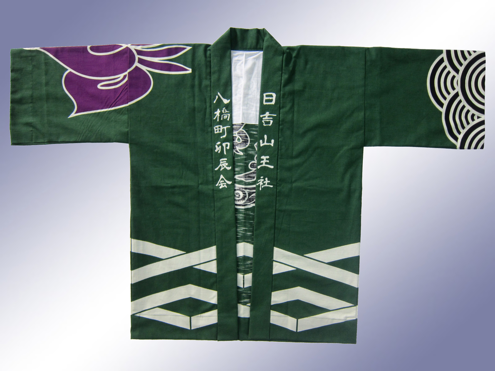 真っ白でなく、漂白加工前の「生成り(きなり)色」の生地をあえて使用することで、少し使用感が出て渋い法被になっています。
