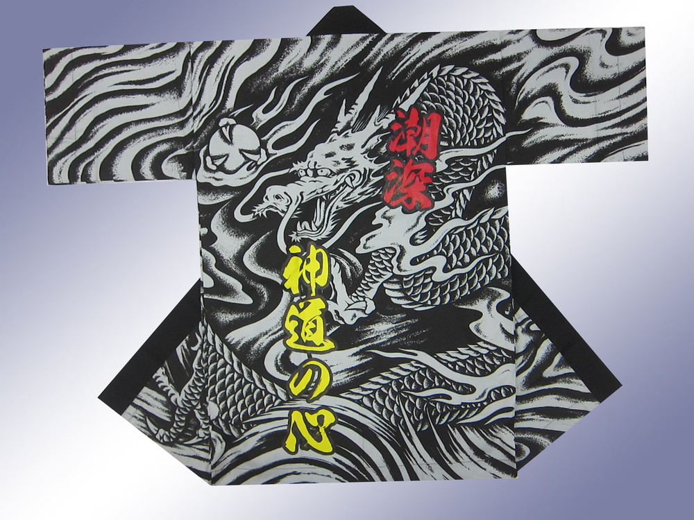 フルオーダー完全オリジナルとは違いますが、お好きなデザイン法被にオリジナルで文字を上から転写プリントしています。