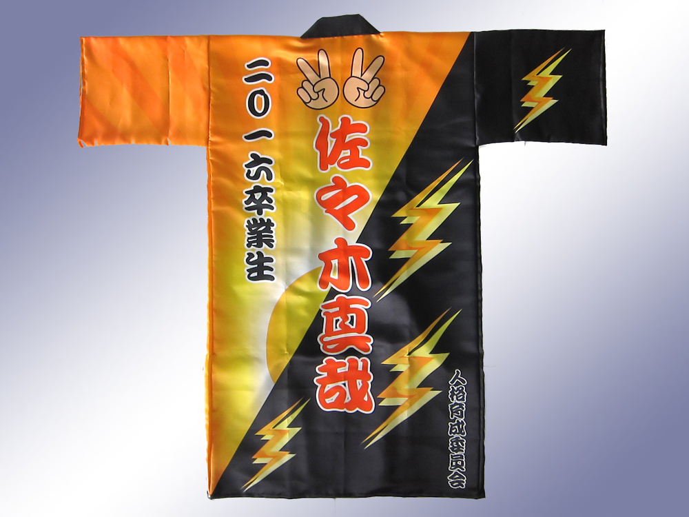 青年会議所の卒業式で登壇される卒業生の方用に、サプライズで作成いただいた、身丈120cmの長法被です!