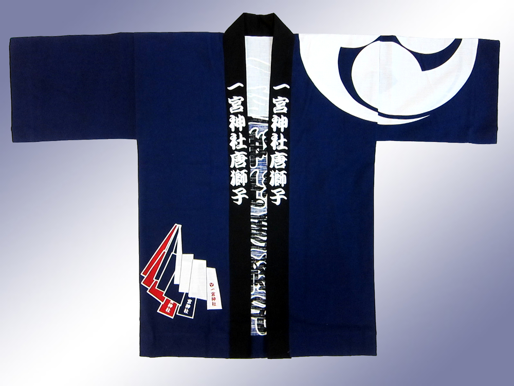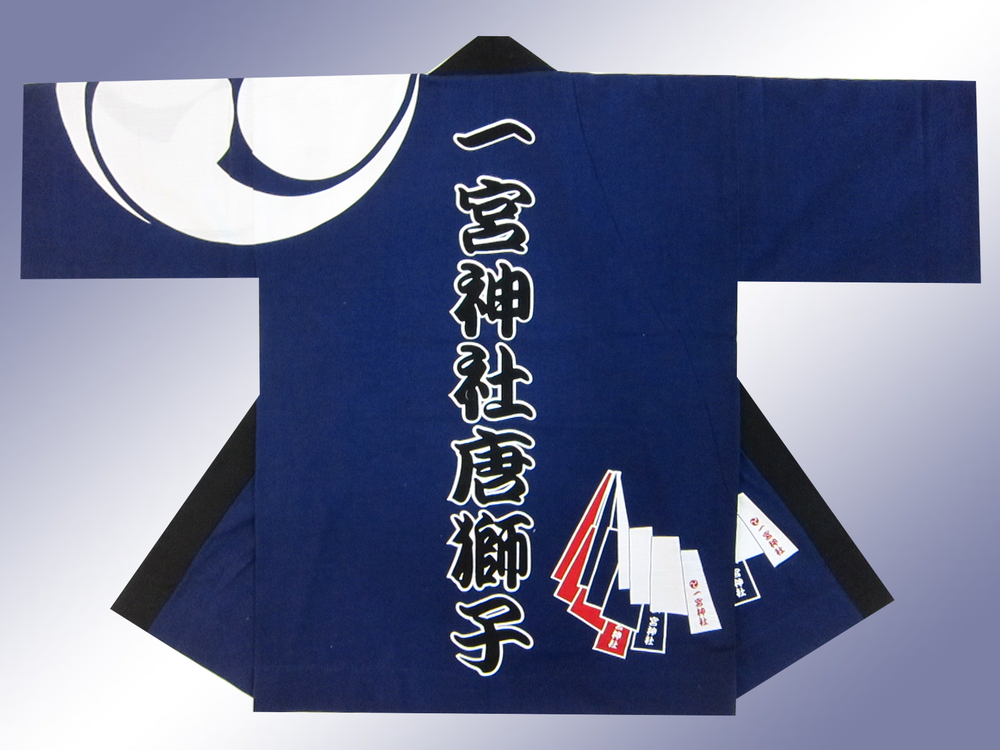 こちらは愛媛県の一宮神社様からのご依頼で作成した本染め法被です。