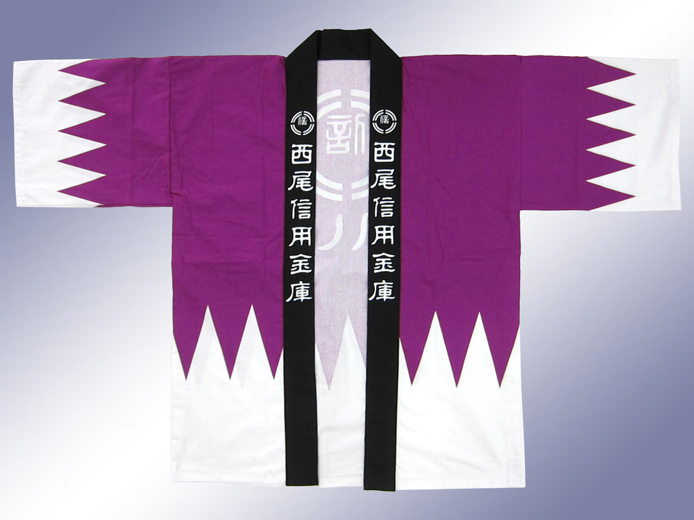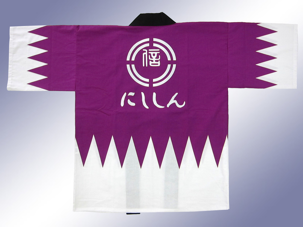 にししん様の企業カラーである紫色地をベースとして、新選組でお馴染みの「だんだら模様」、そして背中に企業のロゴを入れました。