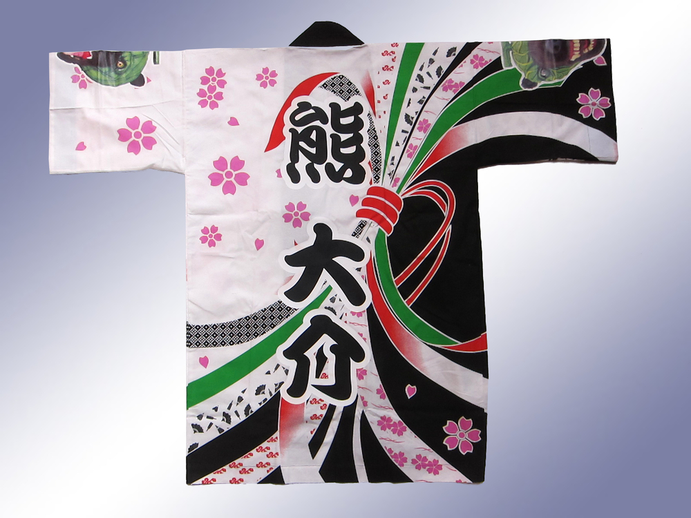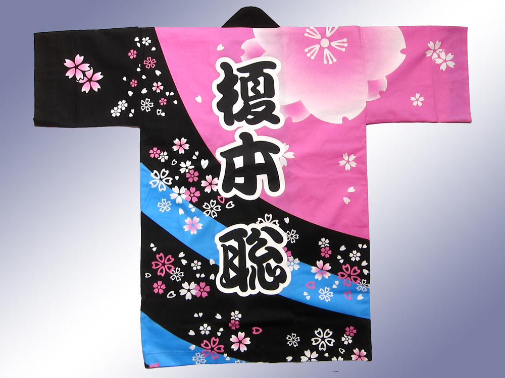 「フルカラー転写プリント」という方法で、既製法被の背中や袖、衿部分に名入れをしています。
