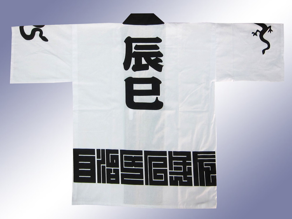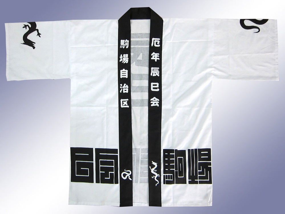 デザインも背中に会の名前、裾には日本古来の角文字をあしらって、やっぱり安定感抜群!左右の袖に蛇と龍(タツノオトシゴ!)を入れてやや茶目っ気感もありますね~