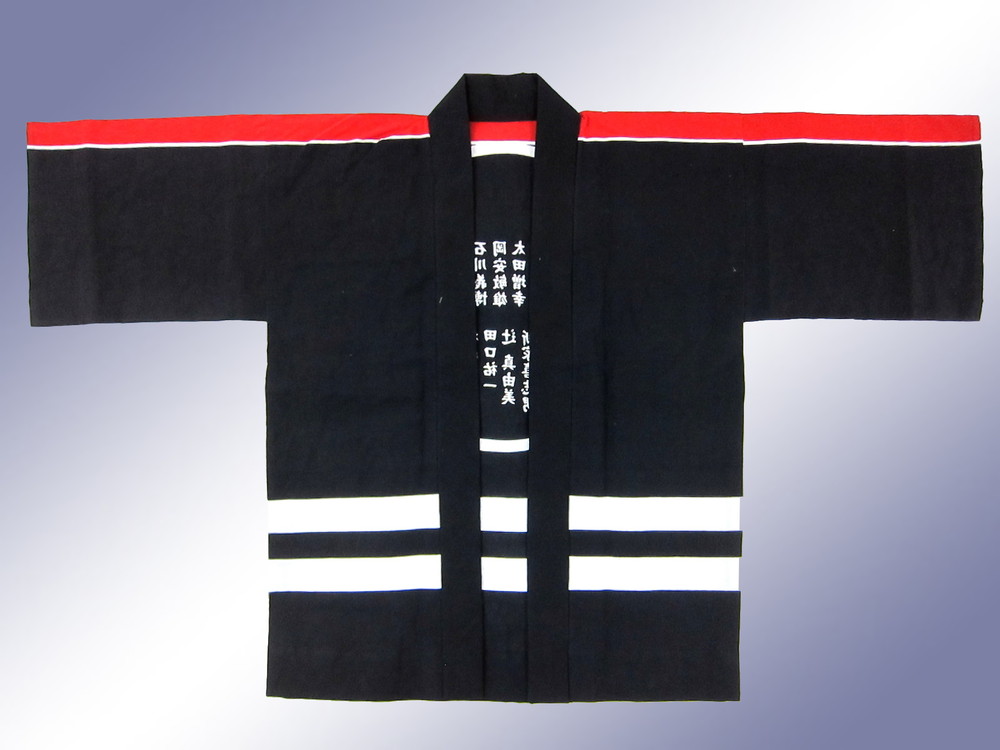 素材は天竺木綿で通常の消防法被とは違い、軽くて着やすい一枚です。何かイベントがあるときにはこの法被を着用されて堂々と初代団長としてご登場いただけることでしょうね。