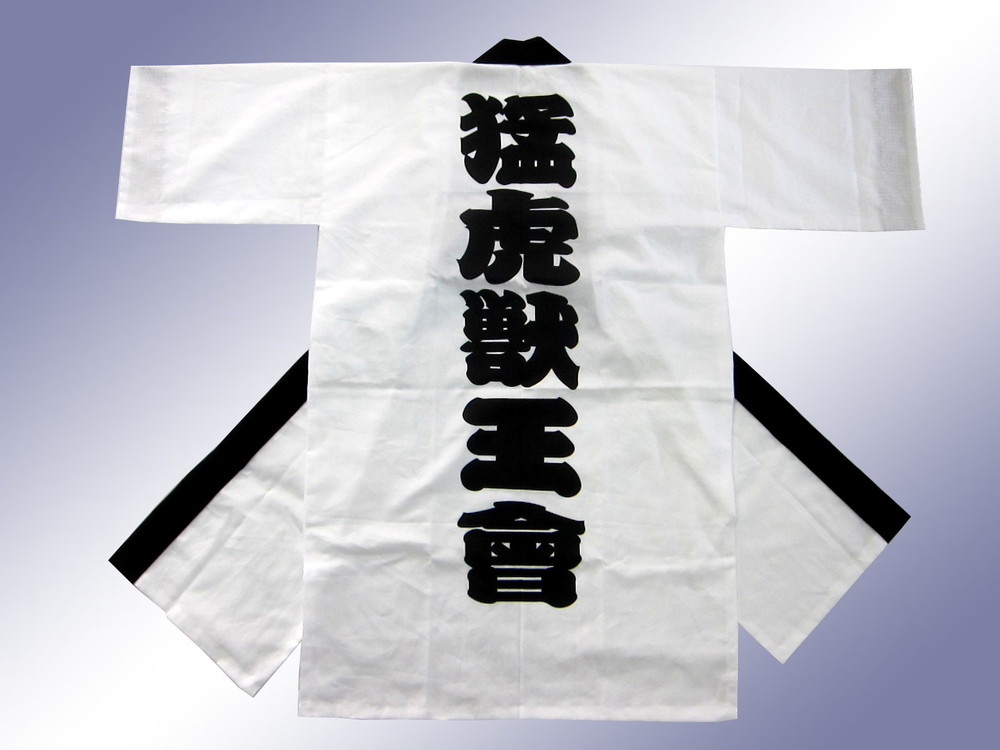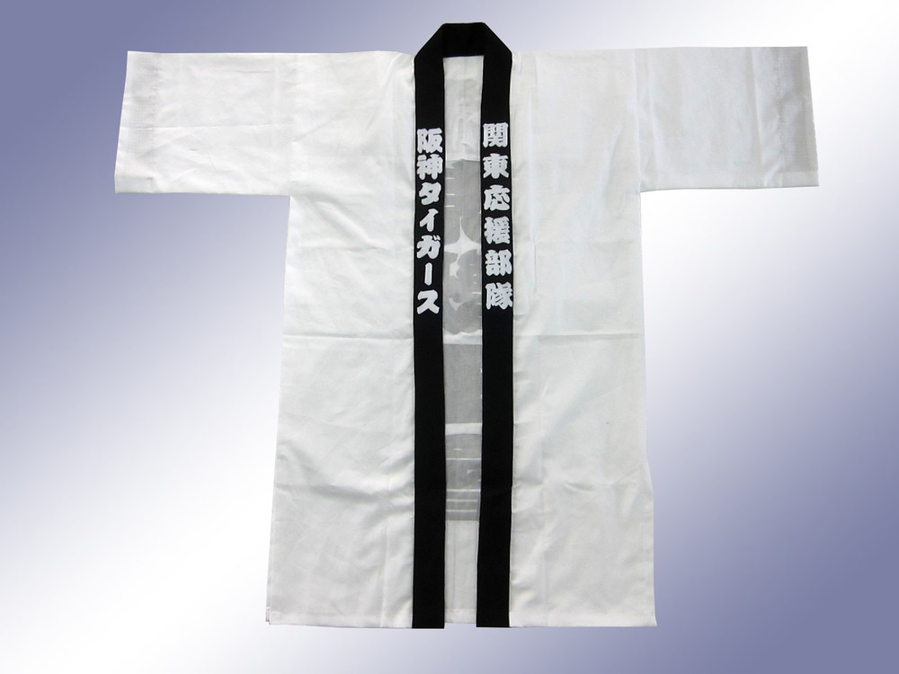 身丈120cmの長法被は軽くて丈夫な天竺生地を使用、裾にはスリットを入れてありますので帯を巻いても動きやすく、応援にはもってこいですね。