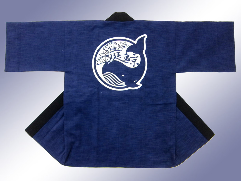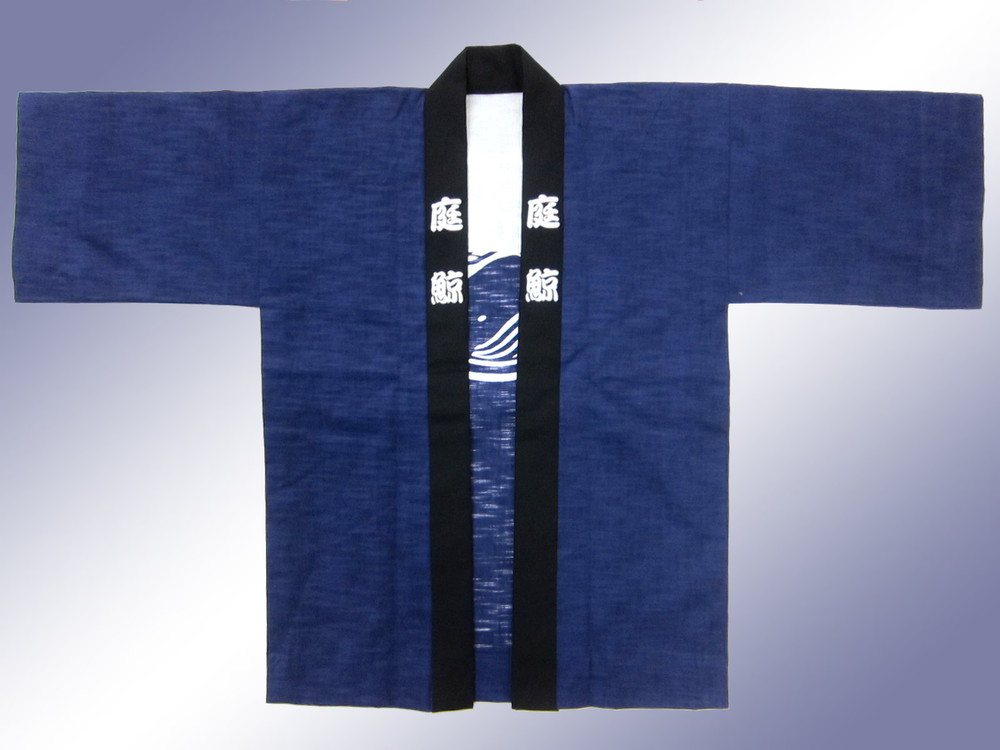 裏までしっかり染め抜かれた職人による本格法被、背中の大紋と衿文字、シンプルですがこれぞ昔ながらの「印半纏(しるしばんてん)」なのです。