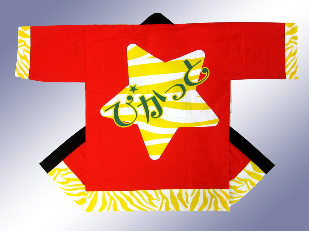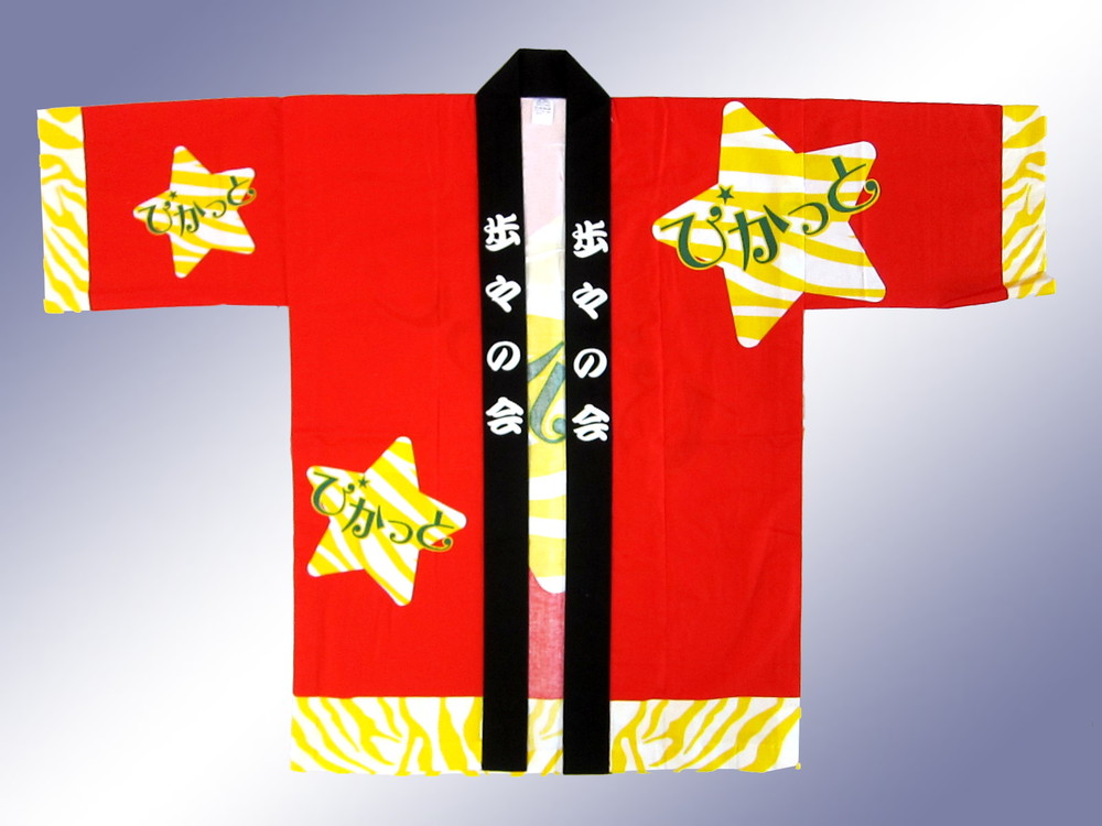 地元の障害者支援施設の皆様からのデザイン変更によるオリジナル法被第二弾です。配色が素敵な法被はプリントではなく本染めですので色の深さが感じられる、風合いも優しい逸品の完成です。