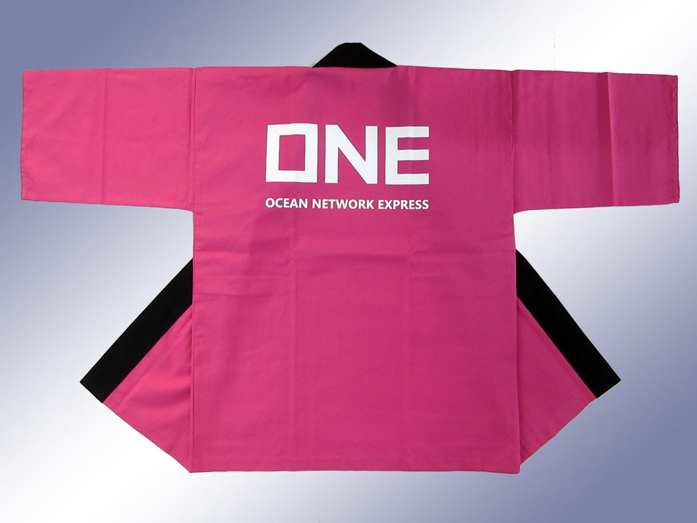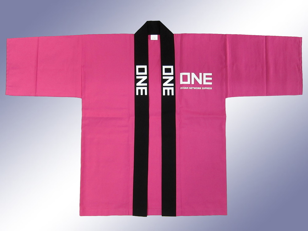 こちらの法被は既製無地法被に企業様のロゴを転写プリントで作成いたしましたが、法被の色目がちょうどご自身の会社のコーポレートカラーと同じでしたのでご予算も抑えめに提案することができました。