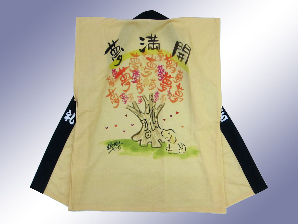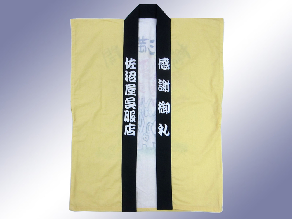 企業・学校・自治体様 佐沼屋呉服店様 茨城県にある佐沼屋呉服店様に作成いただいた、袖なしオーダーメイドハッピです! こちらは、「インクジェット」の方法で作成させていただいたハッピで、使用生地は「 天竺 」(綿100%)になります。 画家の方が色紙に描いた絵を、そのまま背紋として取り込んで作成させていただきました。 インクジェットでは、このような筆のカスれ等の繊細なタッチも簡単に再現が可能です。 また、写真などの多色のデザインでも簡単に取り込んでおしゃれな法被が作成できます。 皆様もいかがでしょうか?