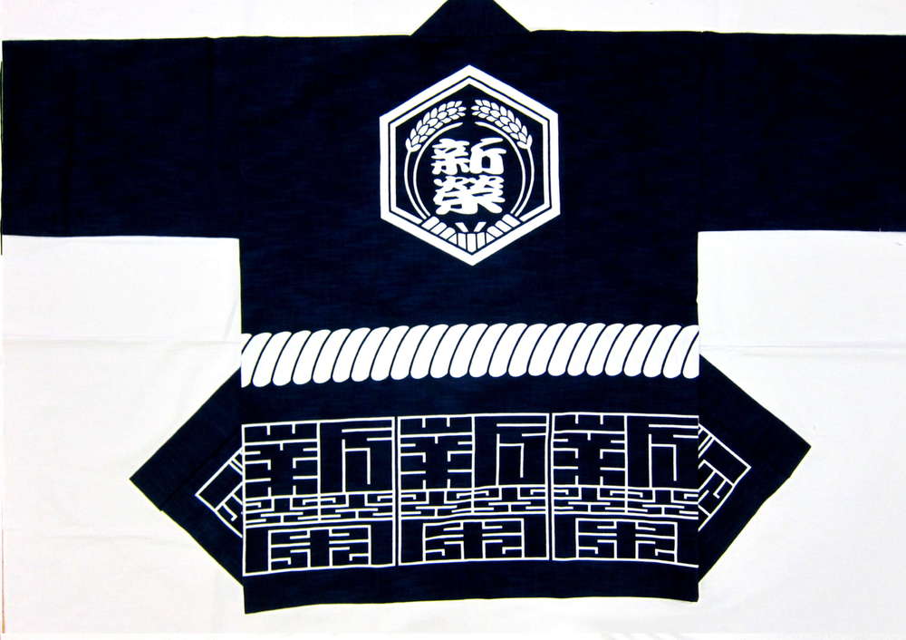 会メンバー様より頂戴したデザインを濃紺に染め、生地は縞模様のあるスラブ生地としました。