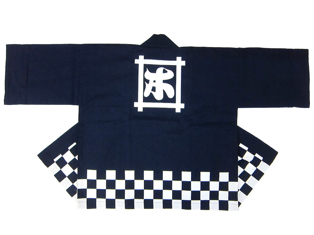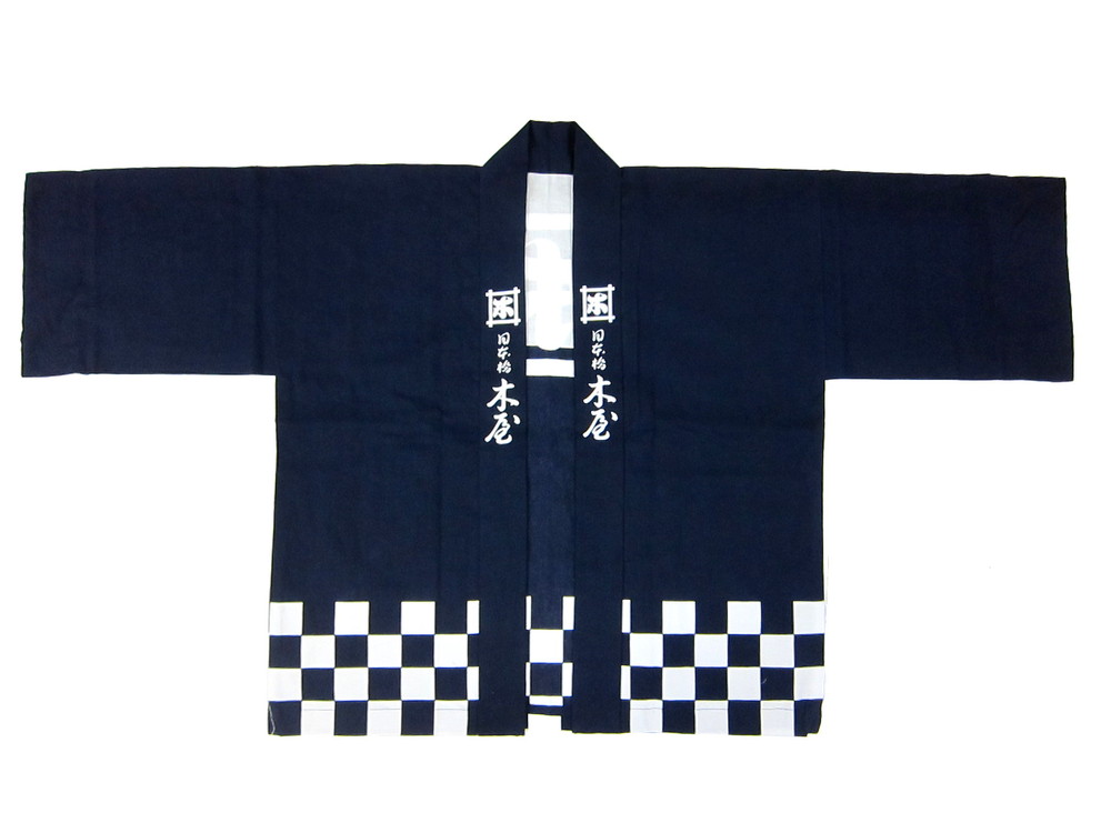 創業から変わらぬ社名ロゴと伝統的でありながら新しさをイメージさせる「市松模様」を染め抜き、素材は丈夫で発色性の良いシャークスキンを使用しています。