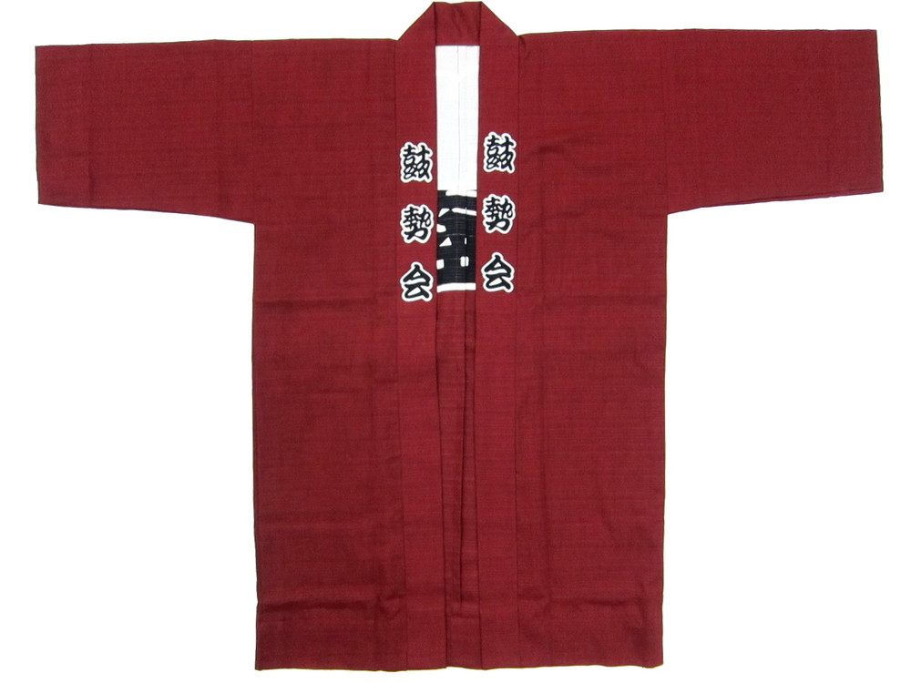 動きの激しい太鼓演奏でも軽量で風通しに優れたシャンタン生地を本染めで丈夫に仕上げさせていただきました。