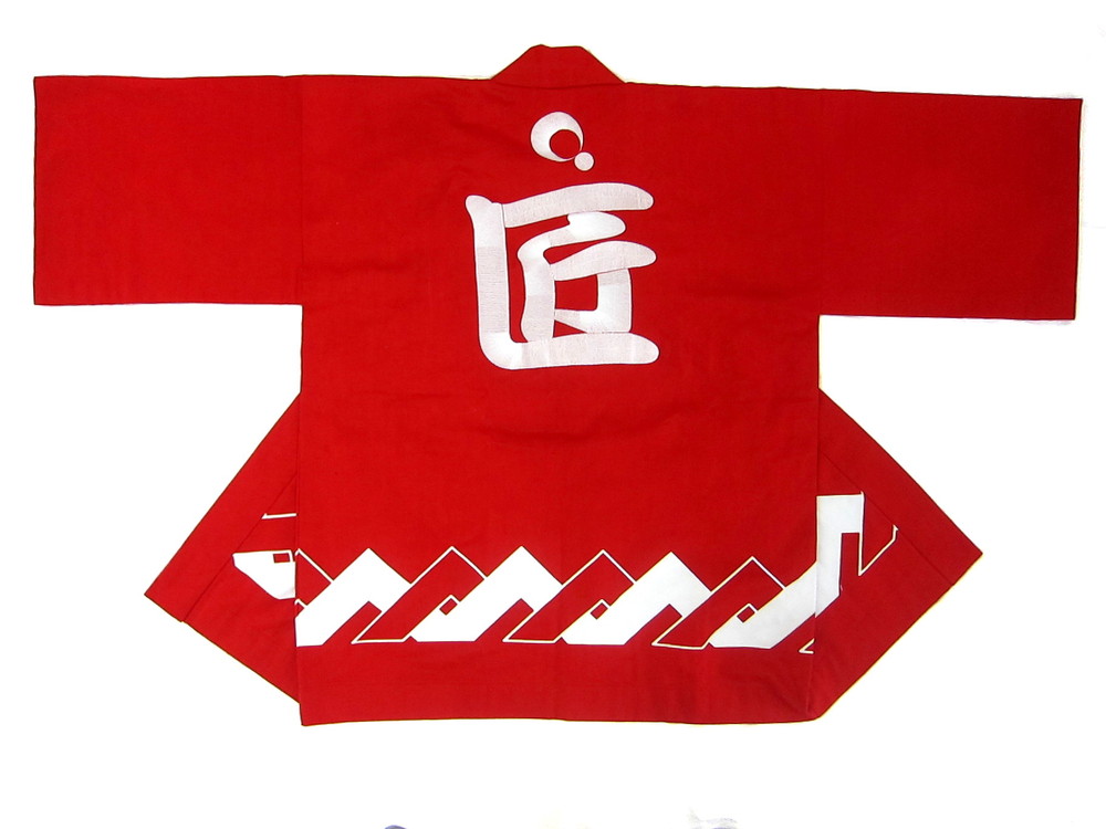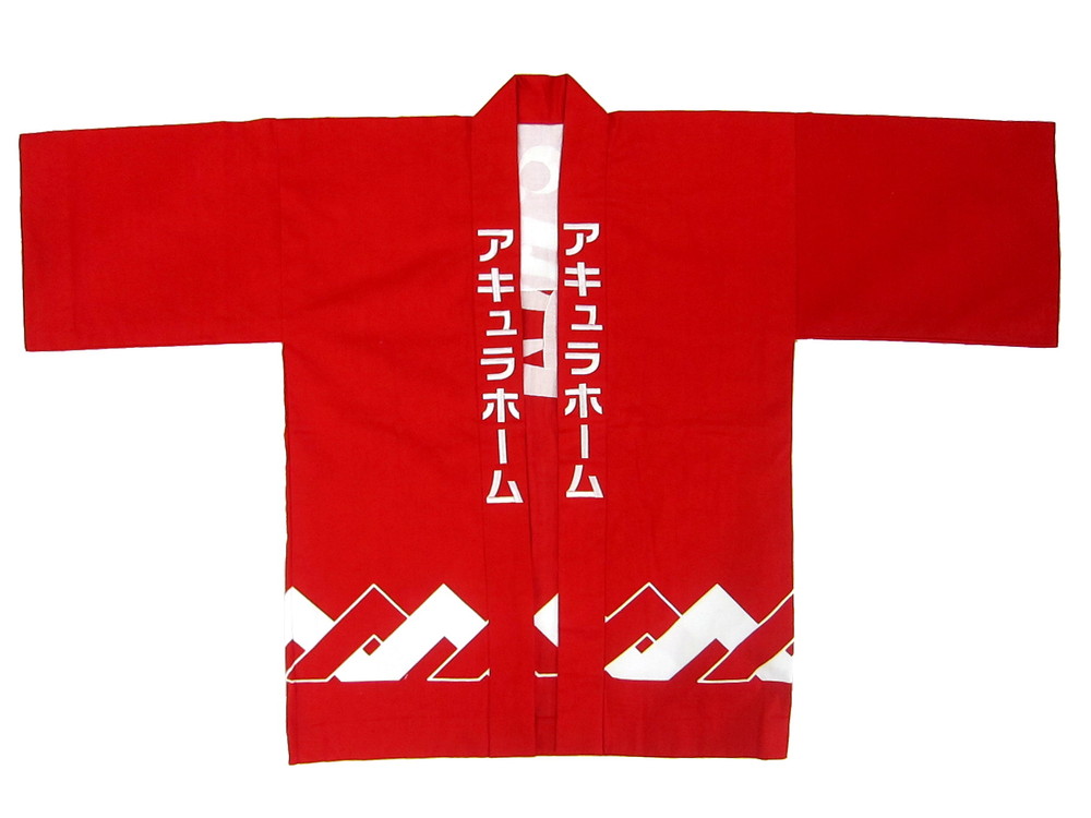 法被本体の赤と裾柄の白は本染めですので全体的にも豪華な雰囲気漂う、1枚だけのフルオーダー法被なのです。