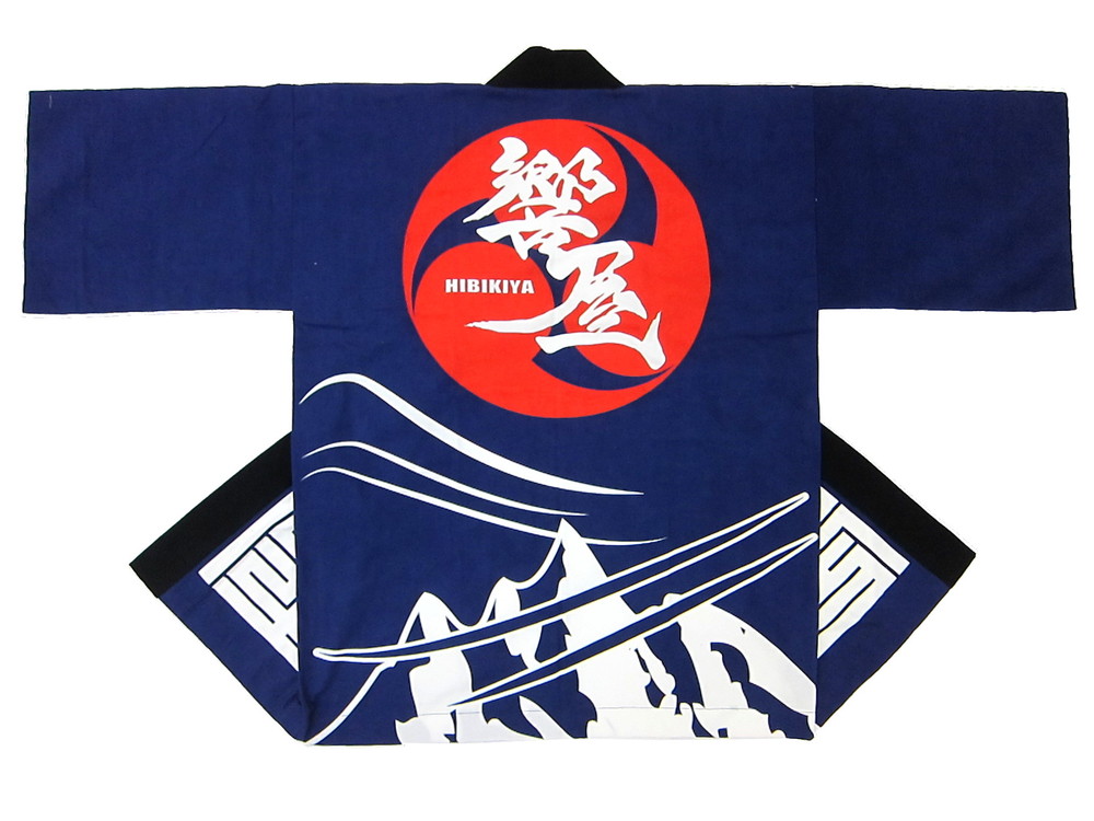 背中の山脈と前面には「響屋」の文字を角文字であしらっていて、デザインの対比も特徴的ですね。