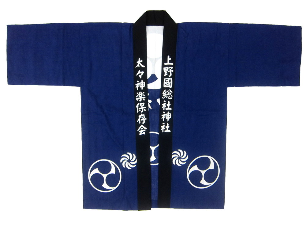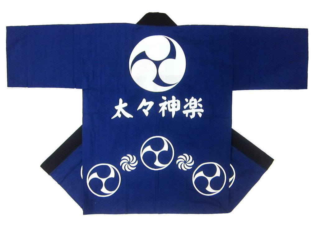 背中の大紋は古くから日本の家紋あるいは伝統的な文様として使われている「三つ巴」。