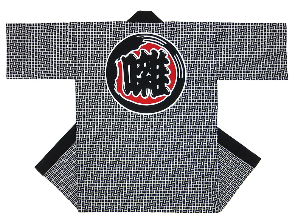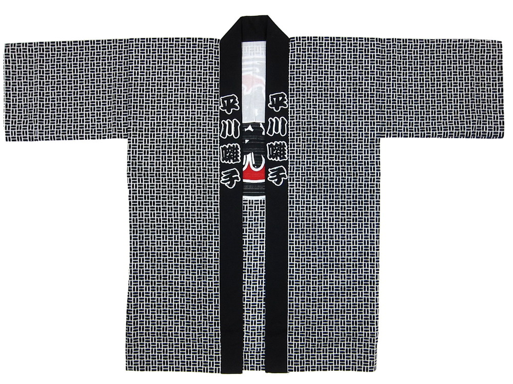 同好会・保存会様 平川囃子様 小紋の総柄、本染め法被です! 白黒「二の字小紋」の総柄に赤の背紋が鮮やかですね。 こちらの柄は江戸時代に詠まれた俳句「雪の朝、二の字二の字の下駄のあと」でも有名で、鯉口シャツや手拭いなどにもよく見られる古典的な柄なのですね。 素材は夏の暑さを和らげる羽織って軽く涼しげな「シャンタン」を使用していますので、お祭りに不可欠なお囃子さんのご負担も少しは軽くなりますように~