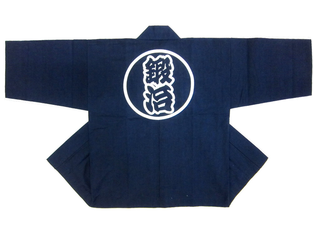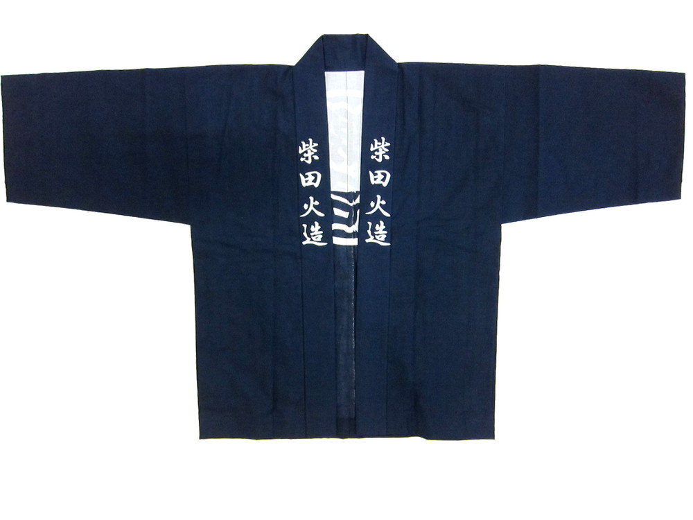 こだわりの本染め法被はこちらも古くからの印半纏に用いられる丸紡27貫を使用させていただきました。背中の中心で生地を継いでいるのも三河木綿に代表される小巾の生地だからこそ、色も落ち着いた藍色でシンプルなデザインで決まりですね。日本の伝統的な趣を感じていただければと思います。