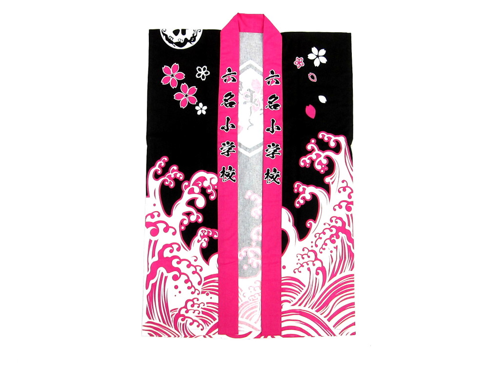 愛知県は岡崎市の小学校様の運動会で、高学年の生徒様に着用いただきます袖無しの法被でございます。