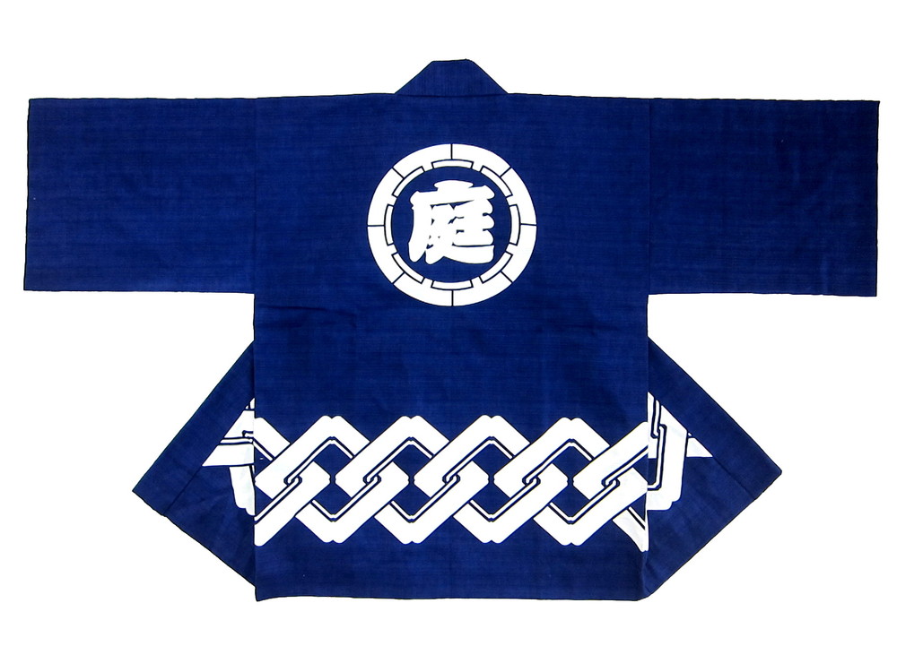 「庭」の背紋をあしらった粋でシンプルな本染め法被を、ご自身用にと1枚のフルオーダーで作成させていただきました。