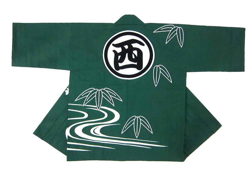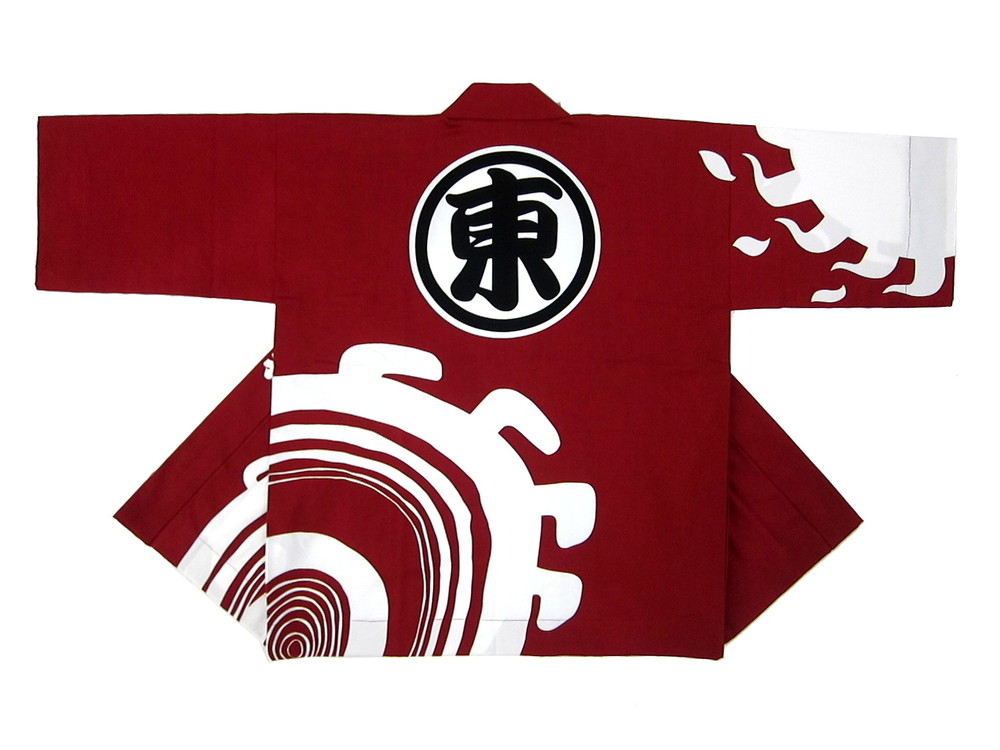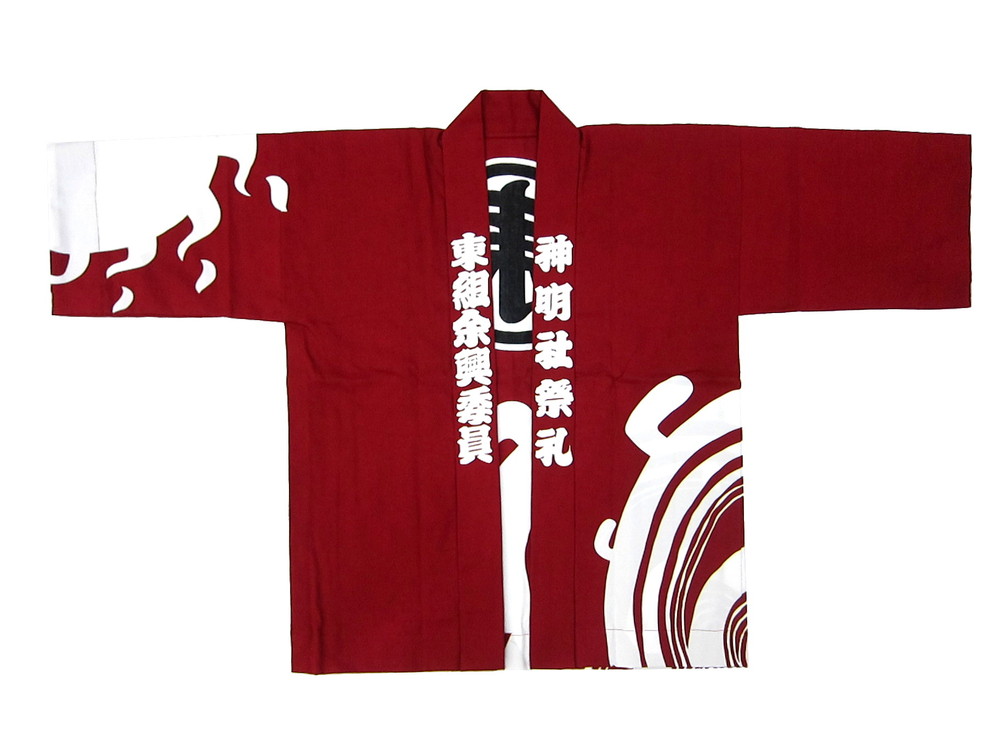 「東組」と「西組」それぞれに色とデザインを変えて、いずれもオリジナルロゴが素敵です。素材も祭り用によく使用されるシャークスキンという動きやすい生地をお選びいただきました。