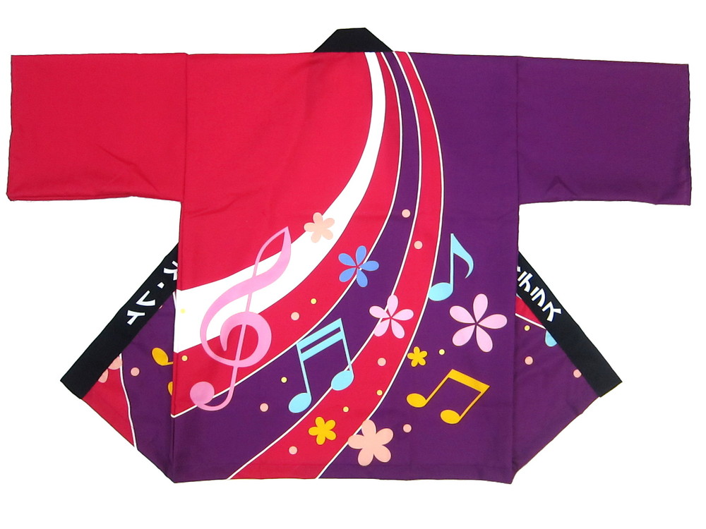 染色方法はフルカラーインクジェットですので鮮やかな多色表現もバッチリです。生地はシワになりにくいポリエステル素材トロマットを使用していますので着心地も軽くダンスショーには最高なのですね~♪