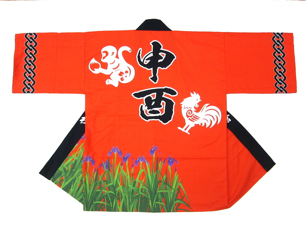 神社仏閣・厄年会様 八橋申酉会様 愛知県は知立市の厄年会の皆様より作成依頼をいただきました。 明るいイメージでの作成依頼から、オレンジベースで作成。作成方法はフルカラーインクジェットプリントですが素材はシャークスキンと通常の綿生地ですので着用感もしっかりとしていますね。 年末の厄年会の皆様の法被姿を楽しみにしております♪