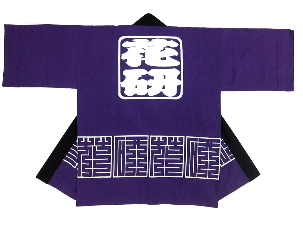 企業・学校・自治体様 株式会社花研様 外食チェーンをされている企業様よりの作成依頼です。 「花研」の二文字を並べた角文字を腰柄に、 素材は天竺で作成、本染めでしっかりと染め抜いています。 衿の赤いロゴがワンポイントでアクセントになっております♪