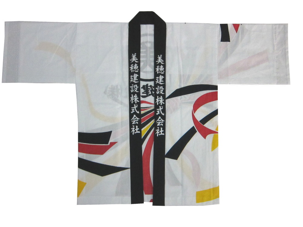 企業・学校・自治体様 美穂建設様 鳥取県の建設会社様より作成依頼をいただきました。 白地に鮮やかな熨斗柄デザインが格好良いです! 素材は天竺、染めは本染めでの作成になります。 これからいろいろな社内行事で法被が活躍してくれると嬉しいです♪