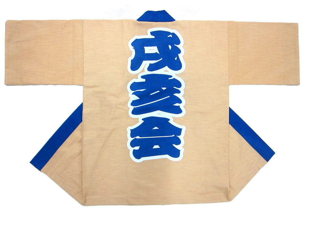 神社仏閣・厄年会様 西方戌亥会様 こちらの厄年会の皆様は愛知県豊川市よりご来店いただきました。 デザインは背中に「戌亥会」の文字を大きく配置したシンプルなもので、淡いベージュ地に鮮やかな青色の配色が本染めの作成方法とも相まってよく映えていますね。 またこのようなシンプルデザインにはスラブの紬風生地がよくお似合いです。 地域の皆様への法被お披露目が楽しみですね♪