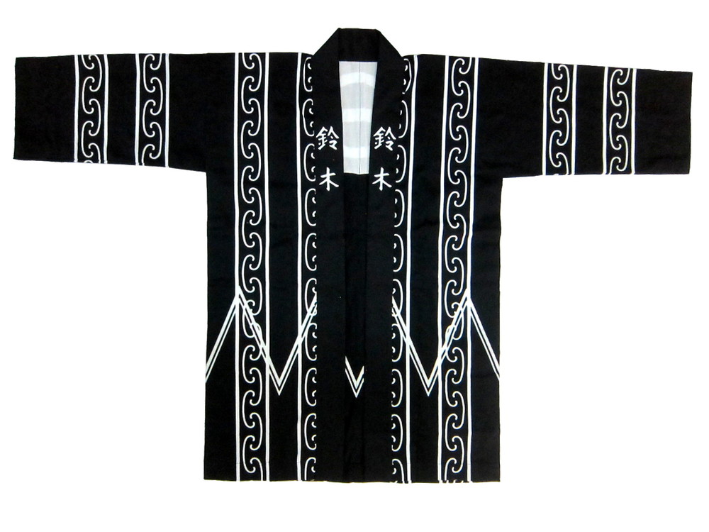 昔ながらの背縫い付きの本染めにて作成した法被をデザイン、仕様そのままに復元いたしました。生地は一般的なものよりやや厚めの20カツラギというちょっとこだわりの素材ですが、程よい柔らかさもあり意外とお勧めなのです。