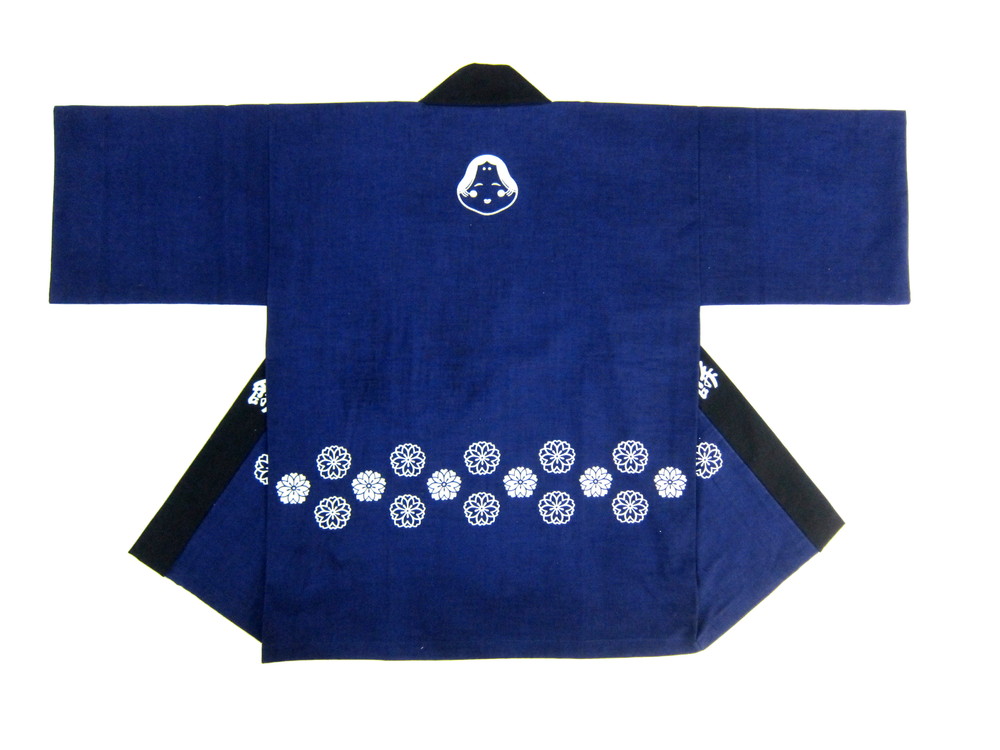 四年前に弊社で初代法被をエンジ色で作成させていただきまして、今回は二代目の藍色法被となります。