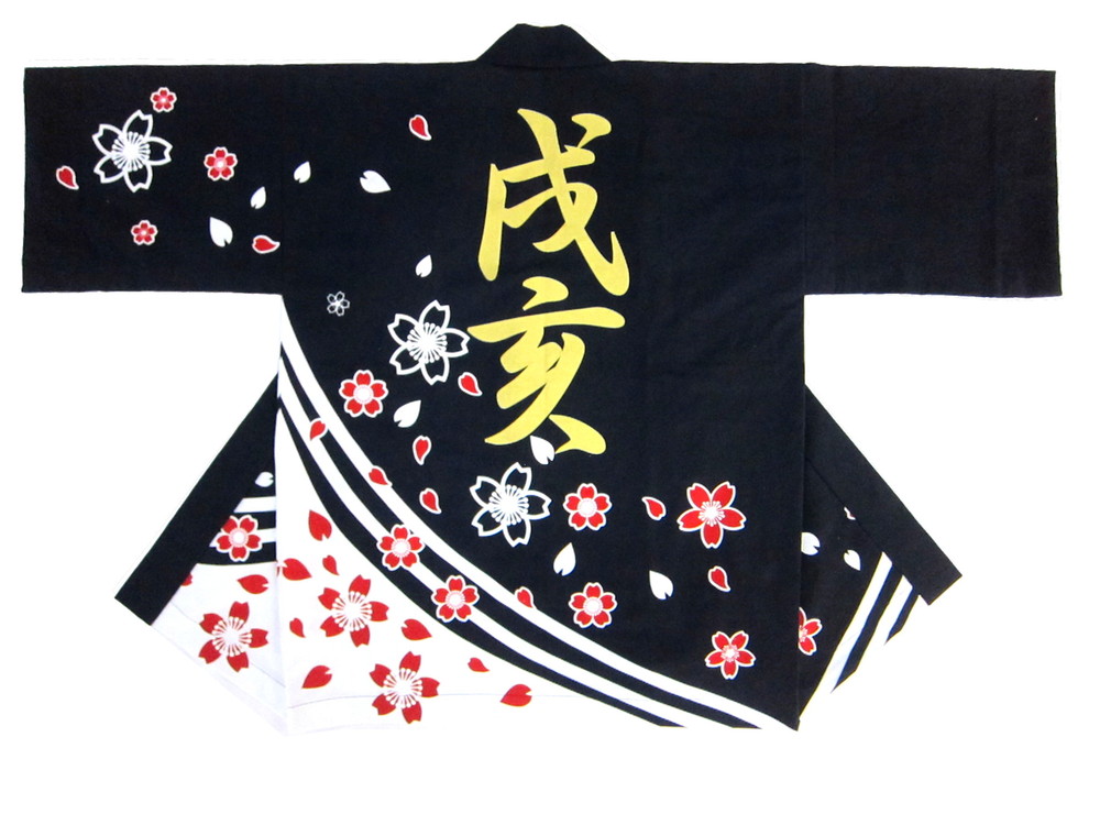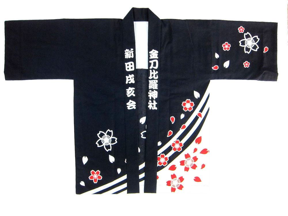 神社仏閣・厄年会様 小垣江新田戌亥会様 こちらの厄年会様、毎年のご発注ありがとうございます。 今回は黒ベースに桜の花を散らしてみました。背中の文字は思い切ってゴールドにしましたのでかなり鮮やかで目立つデザインですね! 生地は天竺、本染め作成をベースに「戌亥」の金は上からプリントしています。 厄年の皆様、間もなく年末ですね!厄払い行事ぜひ頑張ってください!!