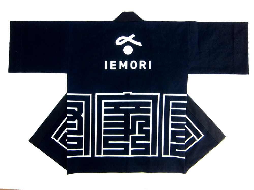 背中に企業ロゴマーク、裾は大胆に大きく角文字「家守」をあしらっています。