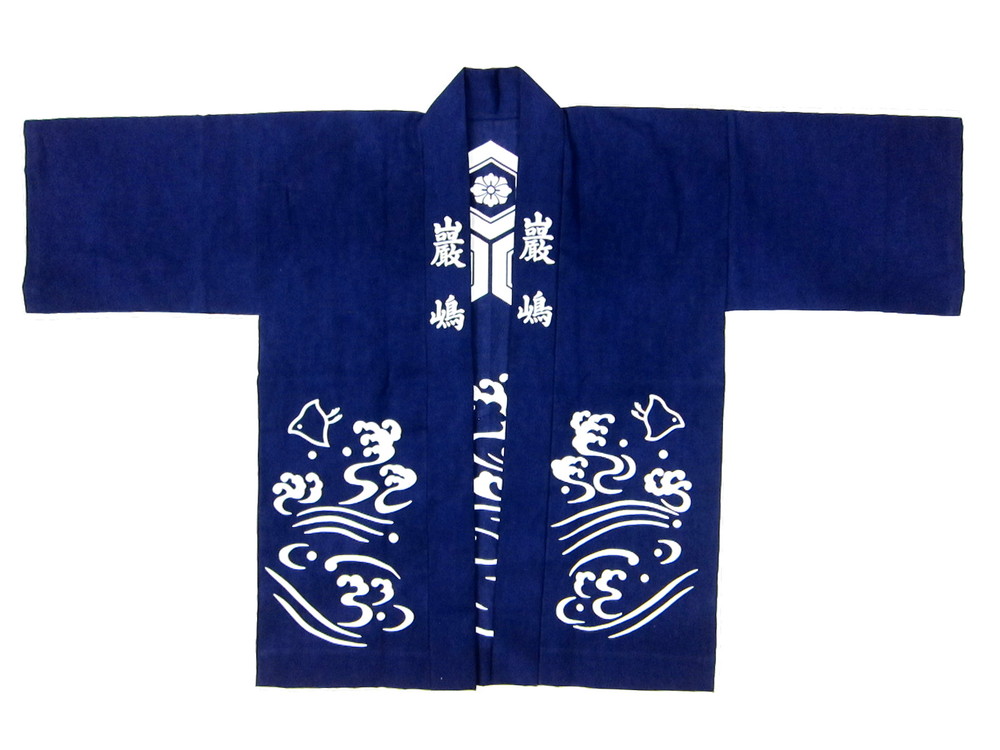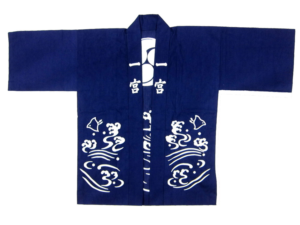 神社仏閣・厄年会様 舌間厳島神社・一宮神社様 愛媛県八幡島市にある二つの神社、「舌間厳島神社」様と「舌間一宮神社」様にて使用される法被です。 ベースは同一デザインですが、名前と背紋をそれぞれの神社様で変えて作成いたしました。 シャークスキン、反応染めで落ち着いた紺色1色のシンプルデザインが良いですね。 主型を共通にして作成する場合はコスト的にも少しですがお安くできるので「あり」ですね。