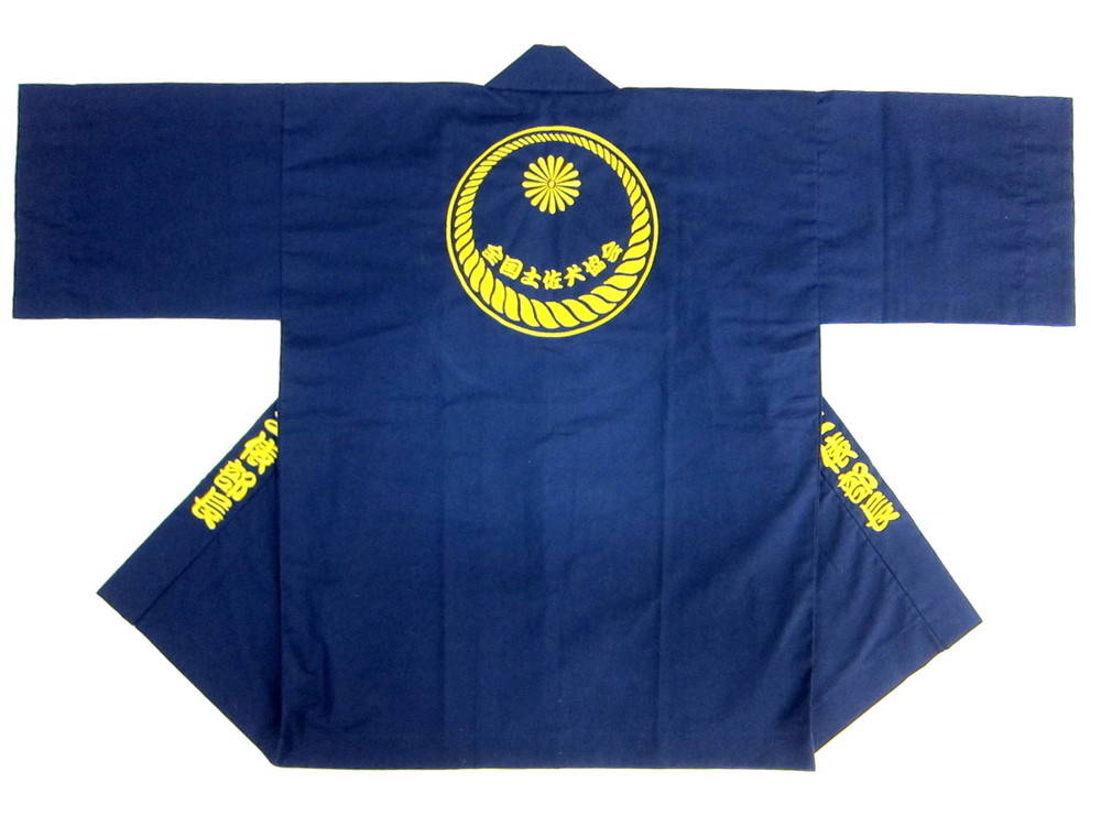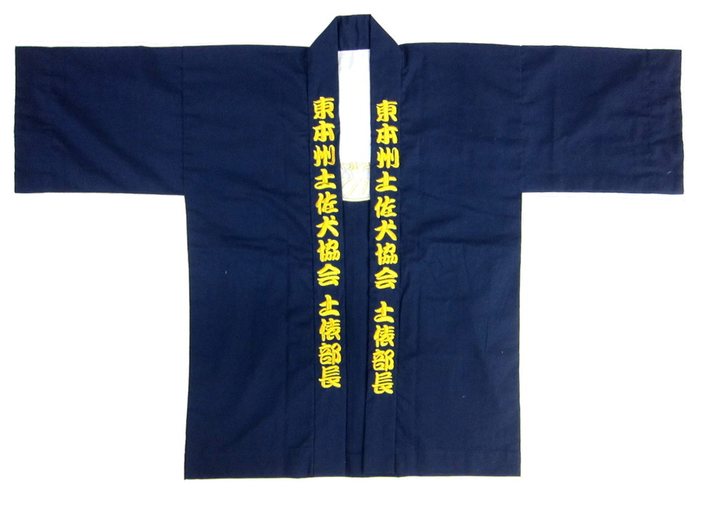 法被本体は紺色無地で本染め、生地は天竺を使用しました。