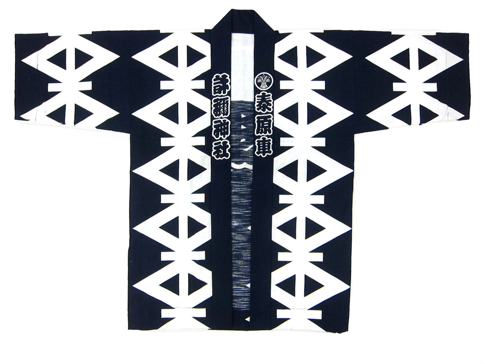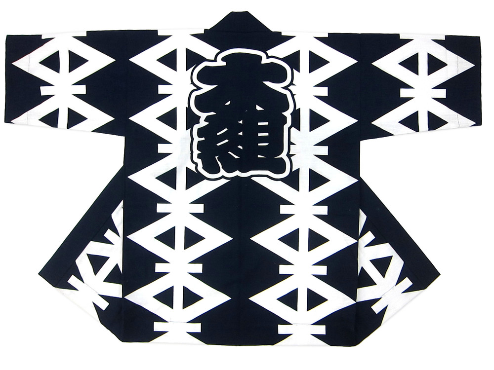 地域団体・業界団体様 木組様 総柄が素敵な法被です。 今までお使いいただいていた皆様の法被をお借りして同じデザインにて作成いたしました。 生地は和風なスラブで本染め作成です。お客様のご要望の本格藍染め風の色と風合も再現できたようで大正解です。