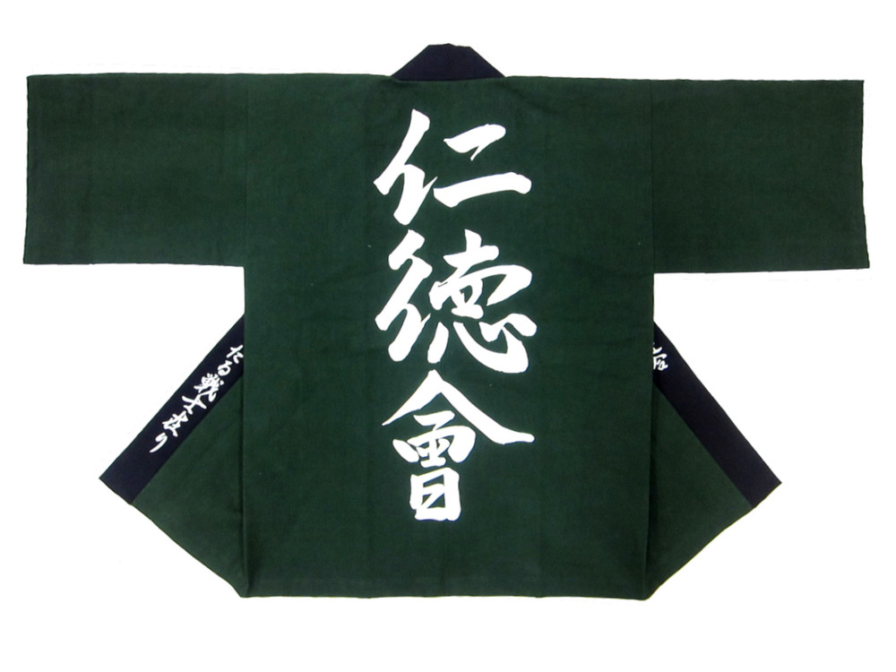 同好会・保存会様 仁徳會(堺シュライクス私設応援団連合)様 プロ野球関西独立リーグに所属する堺シュライクス私設応援団の皆様よりご注文いただきました! 球団カラーの深い緑が良いですね。反応捺染、生地は天竺で味わい深い法被となりました。 今のところ今シーズンは負けなし、注目の強豪チームに思わず応援したくなるのです。