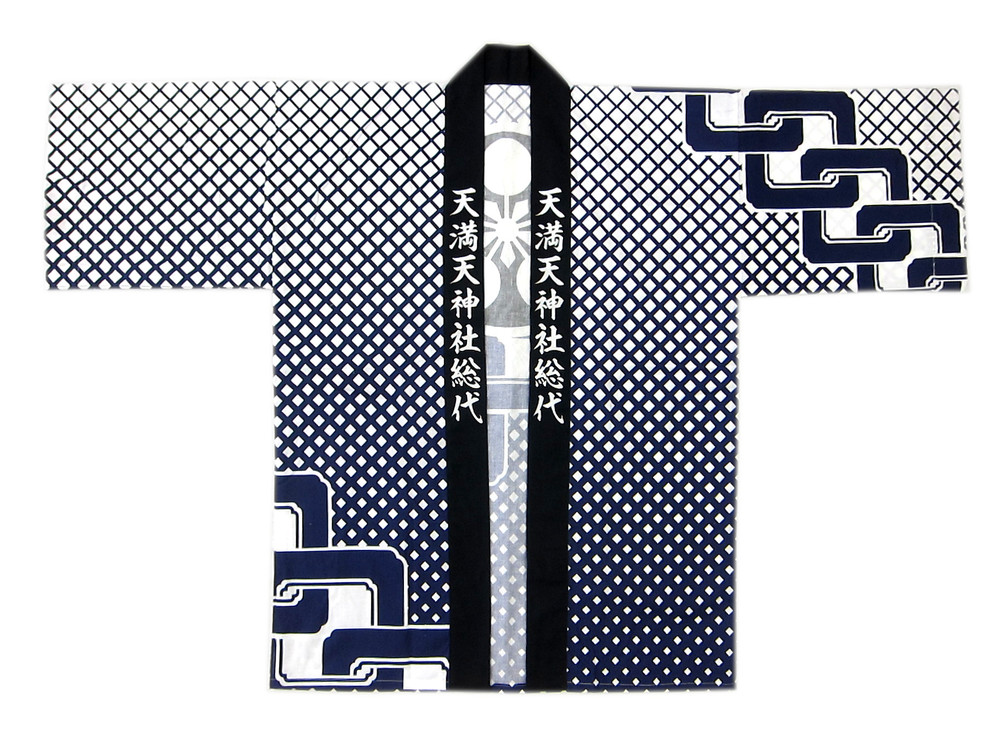 神社仏閣・厄年会様 古市場天満天神社様 細かな総柄に梅鉢紋が良く映えるデザインです。 今回の作成方法はフルカラーインクジェット、生地は天竺になります。 機械プリントの良さで細かいデザインにも対応でき、本染め作成の法被とほぼ風合いも変わらず比較的短納期にてできあがりますので今後おすすめの作成方法として皆様に提案させていただきたいのです。