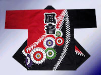 羽織るだけでも元気みなぎるエネルギッシュな法被です。広島の和太鼓チーム御用達!