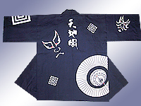 隈取り柄に番傘、デザインはお店オリジナルの浴衣と おそろいです。こんな法被を羽織られた番頭さんに迎えられつつ…泊まってみたいな。