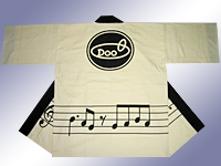 同好会・保存会様 出前おかりな楽団様 「おかりな」を出前で演奏されています。この度コン サートの舞台衣装として作製させていただきました。背紋はおかりなを、裾柄は五線に音符をあしらって楽しい雰囲気ですね。音色が聞こえてきませんか?